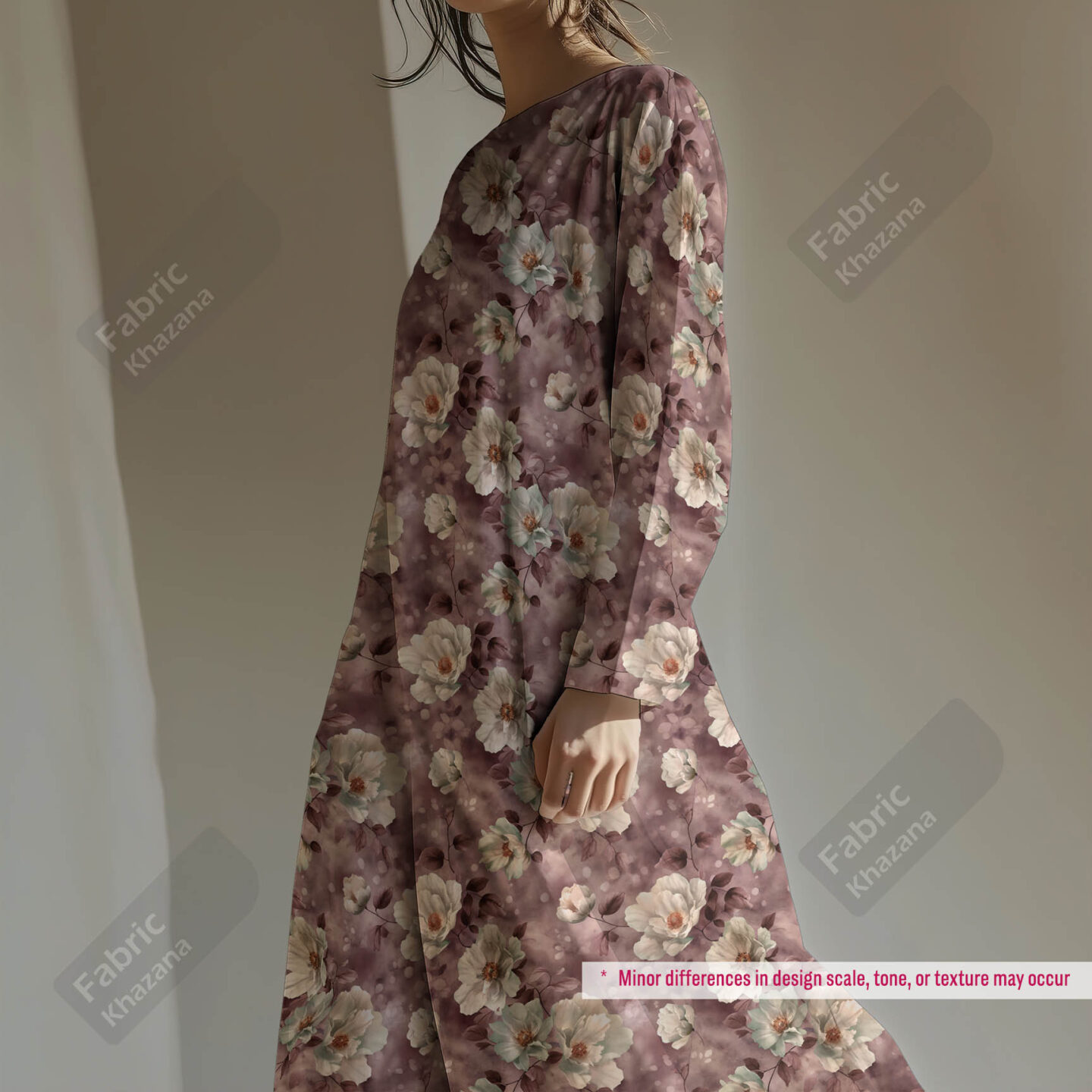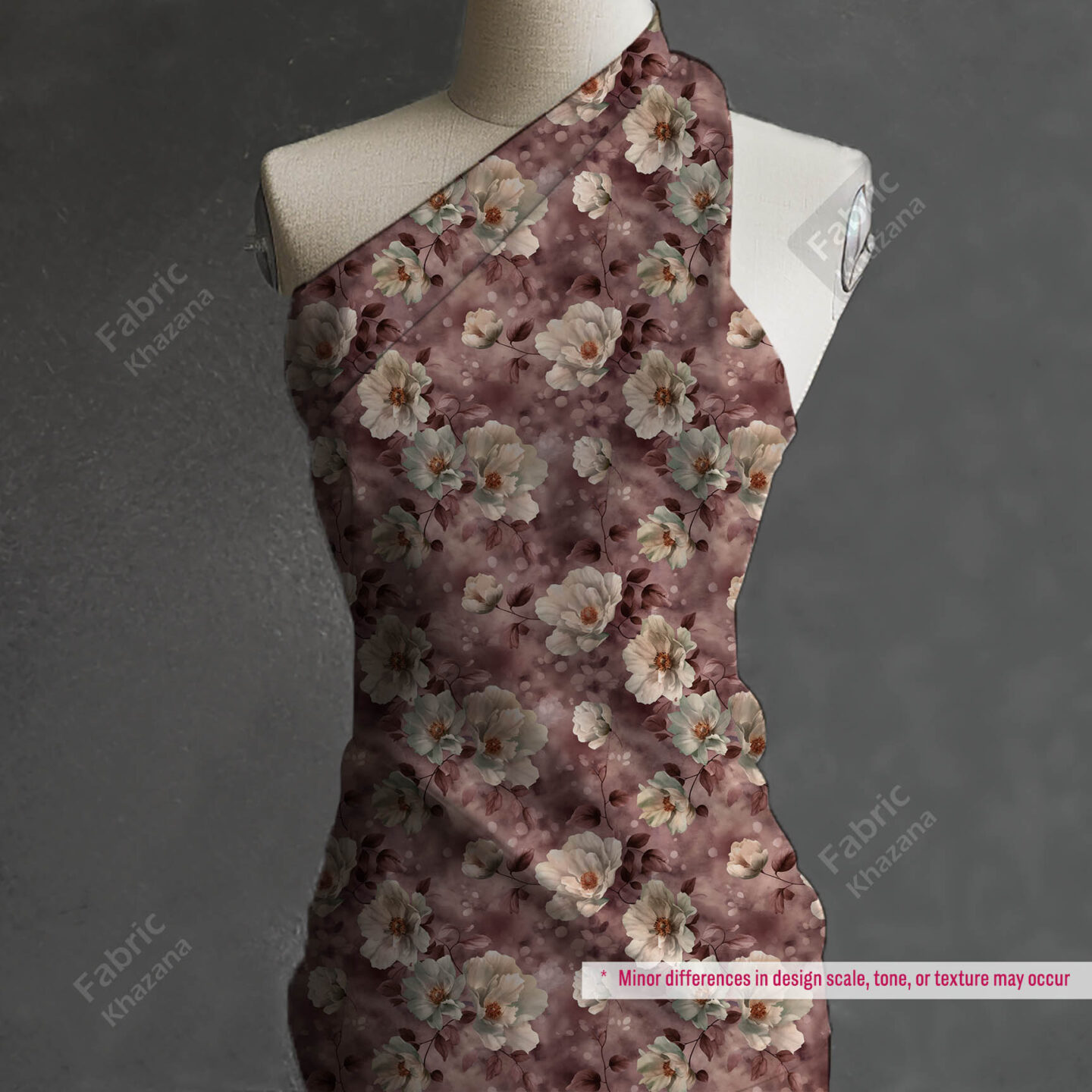 Experience understated luxury with this Elegant Brown Floral Polyester Fabric, designed for those who appreciate subtle sophistication. The intricate floral design, featuring beige and cream blossoms with hints of green, adds a soothing yet stylish touch to any creation.