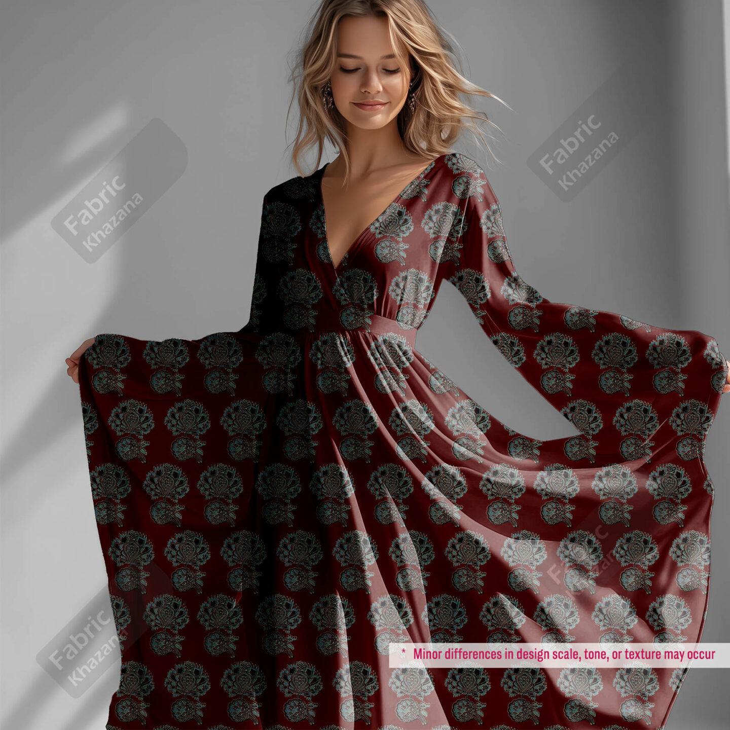This printed polyester fabric combines tradition with practicality, perfect for fashion designers, boutique owners, and home crafters seeking beauty and reliability in one fabric