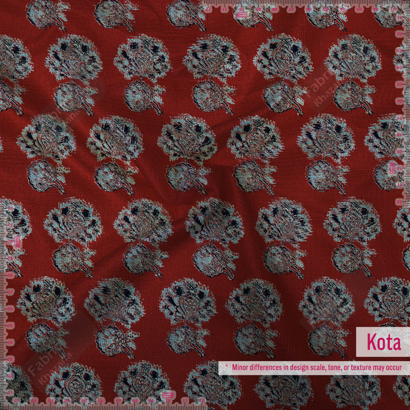 Experience the charm of traditional artistry with this red and blue printed polyester fabric, a perfect mix of comfort and class. The detailed floral buti pattern gives a handcrafted appeal, making it ideal for both festive and contemporary designs.
