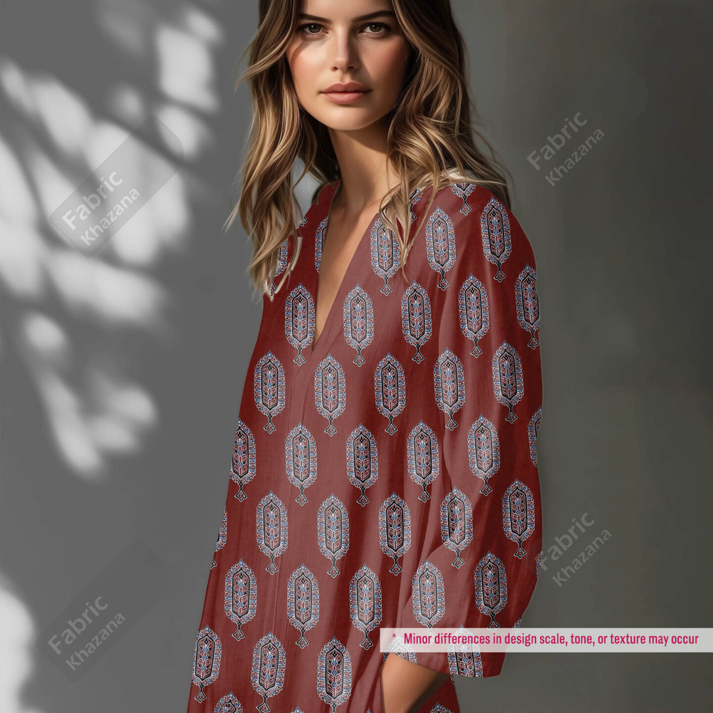 Perfect for kurta sets, dresses, tunics, or DIY décor, this fabric effortlessly blends timeless design with modern practicality. It’s a favorite among designers and fashion lovers seeking style and comfort.