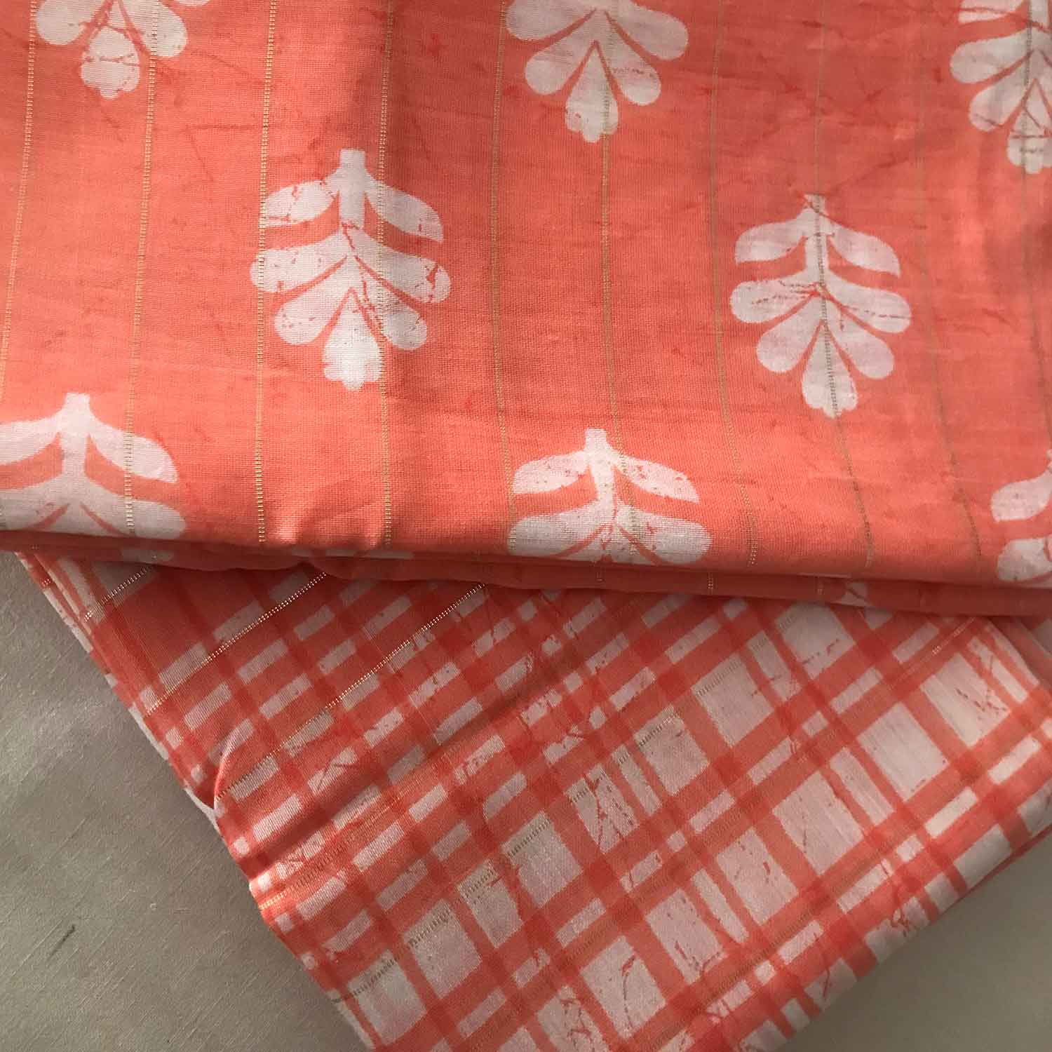 Hand Screen Printed, Viscose Lurex Chanderi Fabri.