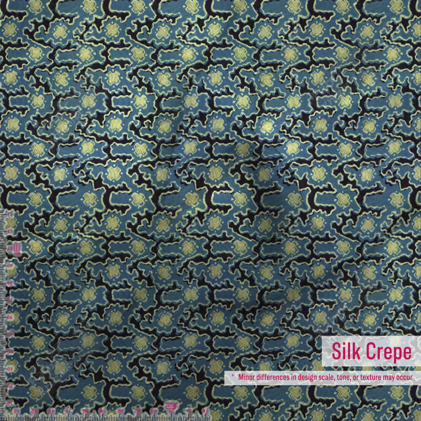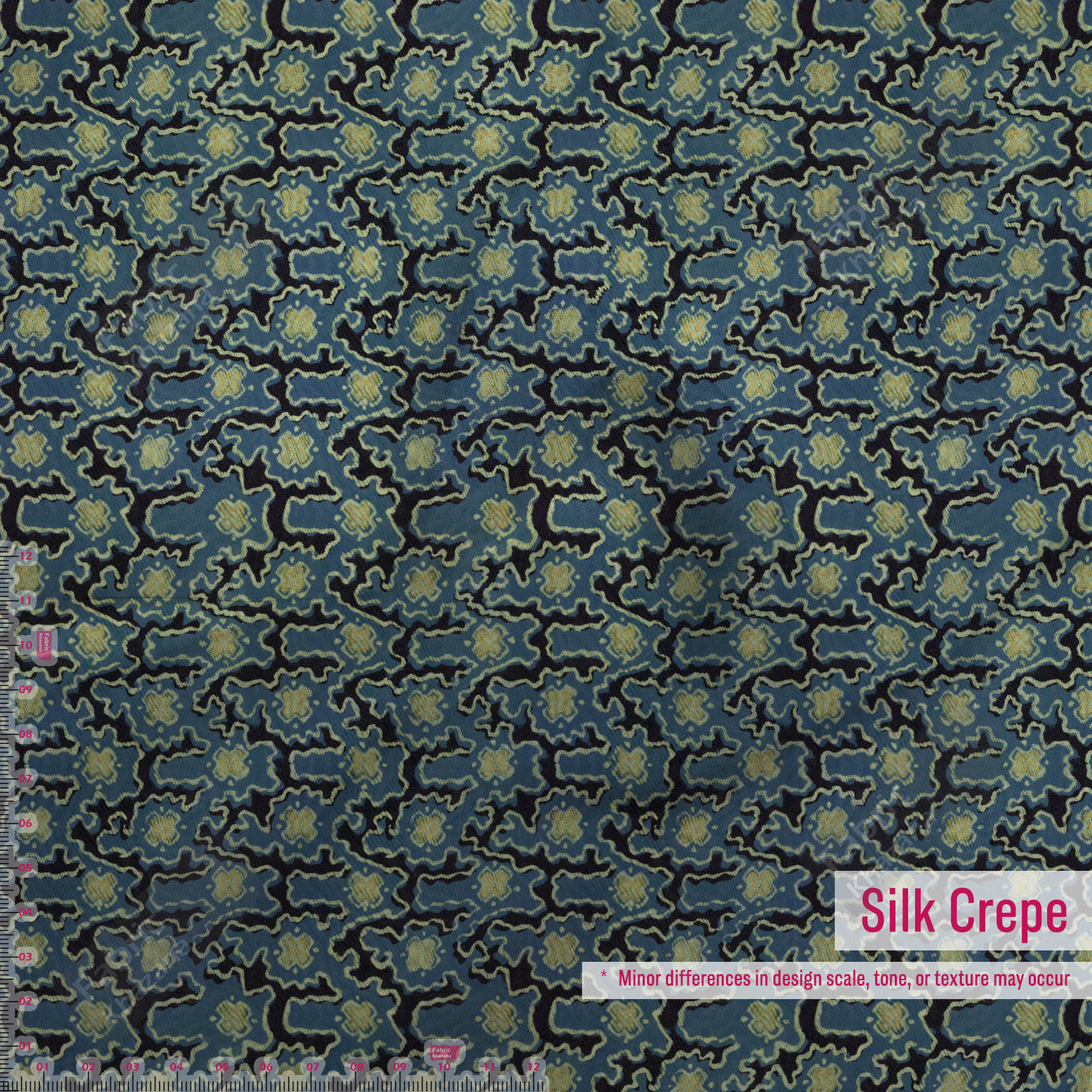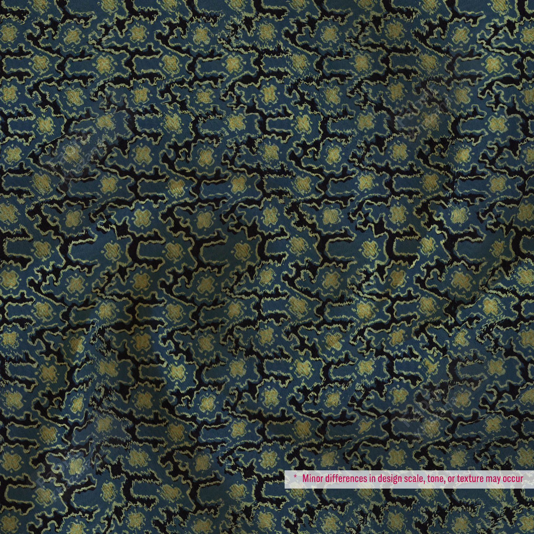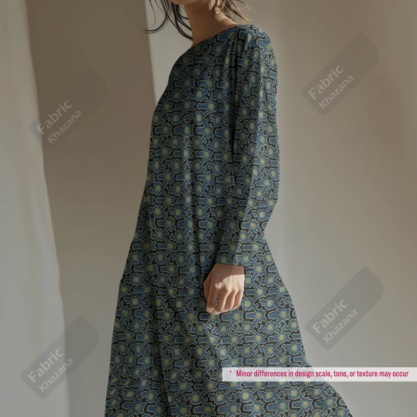 Infuse richness and class into your next creation with this premium navy blue polyester fabric featuring a golden-olive abstract print. Its intricate detailing and lustrous finish reflect the essence of Indian craftsmanship. Ideal for those who love elegant yet practical fabrics, this design offers a perfect blend of tradition and trend.