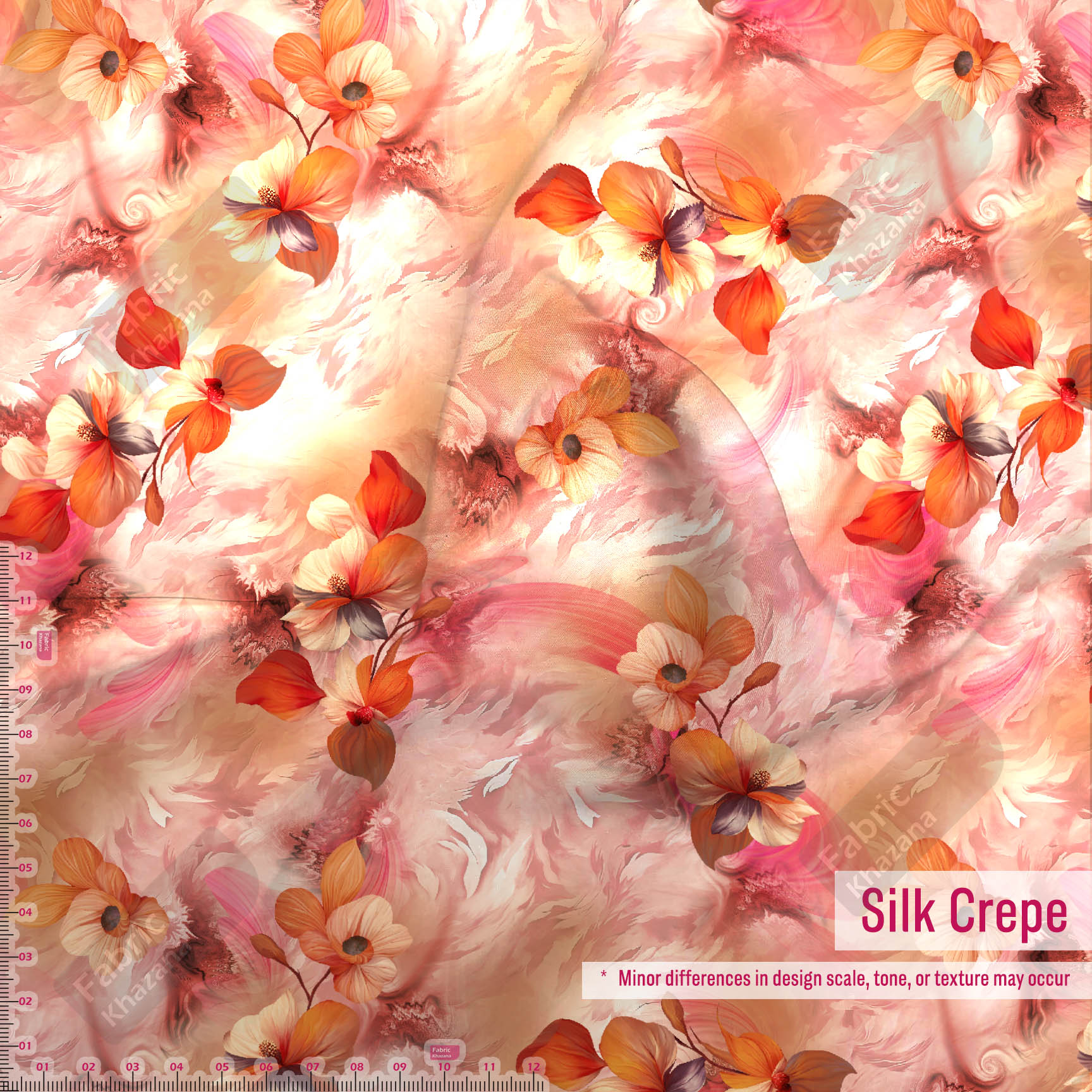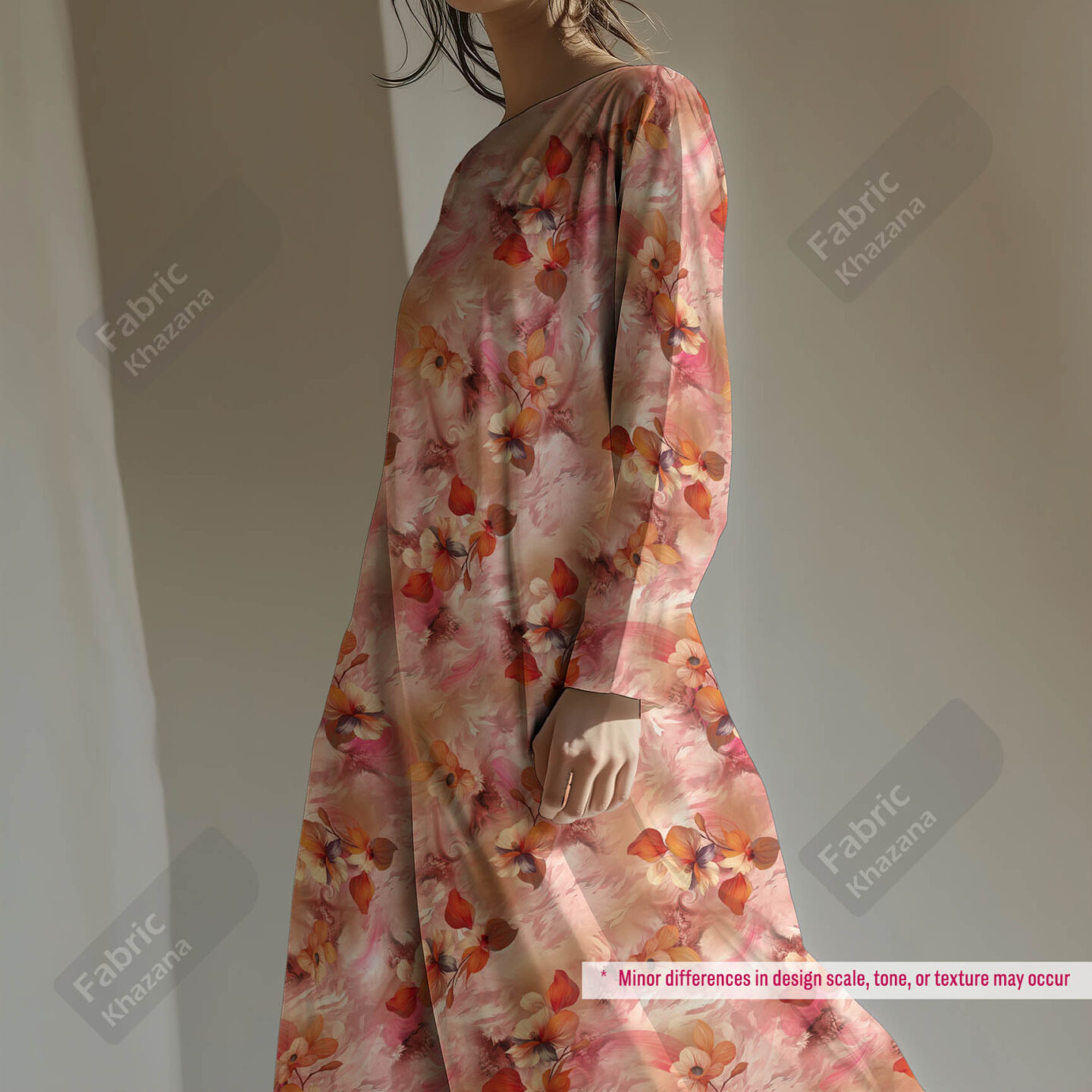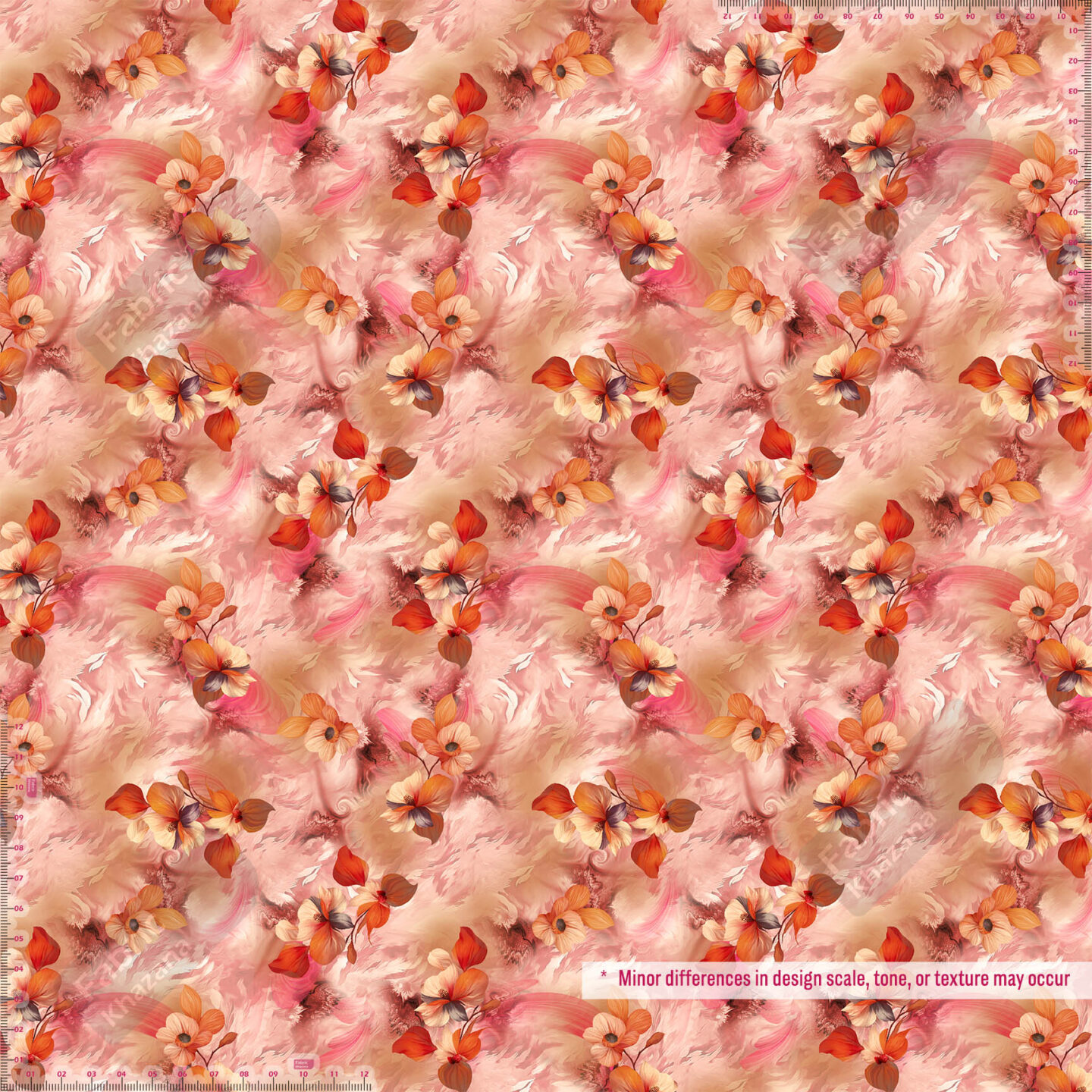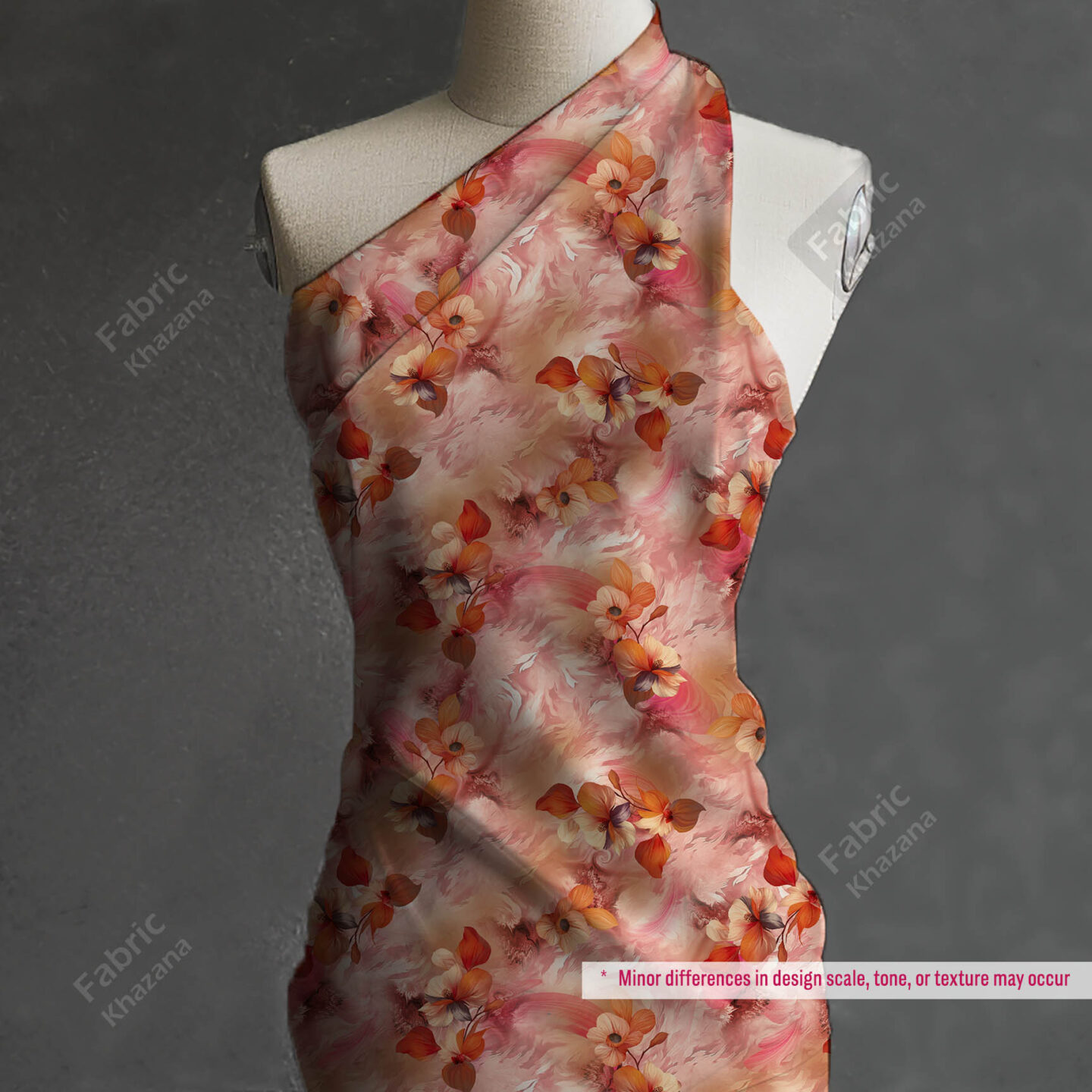 Brighten up your wardrobe with this Vibrant Peach Polyester Fabric. Its mesmerizing blend of orange and red florals captures the spirit of spring, while the peach base adds a soft, feminine appeal. The high-definition digital print enhances the beauty of each petal, creating a contemporary floral design with traditional charm.