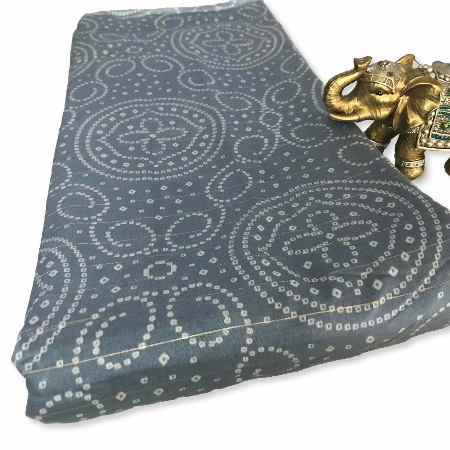 SKU: VCL-FK-GREY-1 Category: #ChanderiLurex Tags: #chanderi #grey #lurex #screenprint #viscose