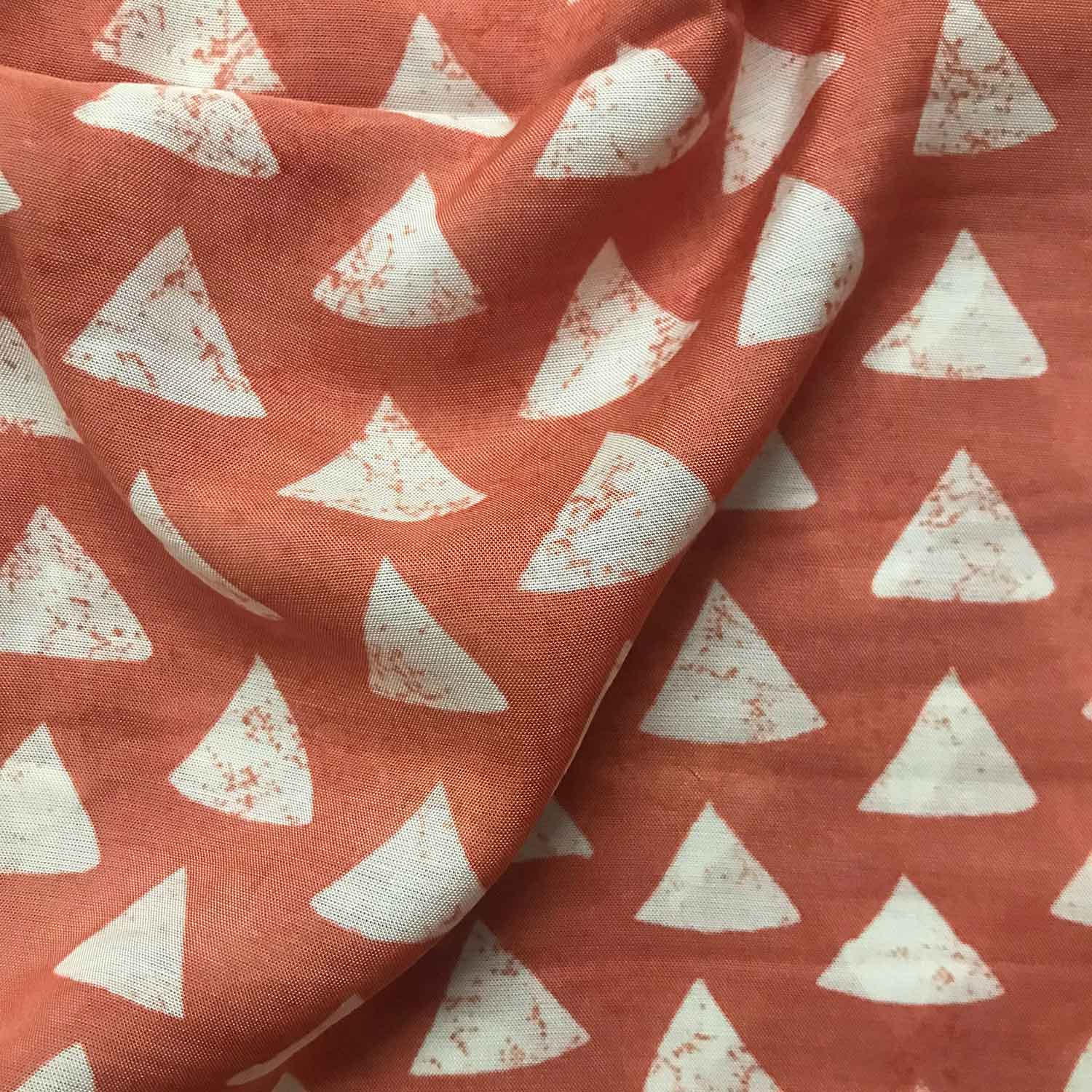 Be the first to review “White Triangles Rust Orange Viscose Muslin Fabric”